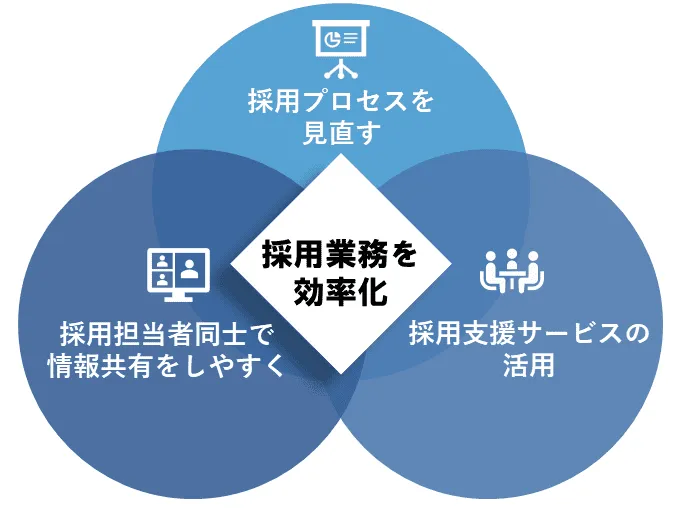採用業務の効率化に効果的でよく用いられている方法を3つ紹介します。