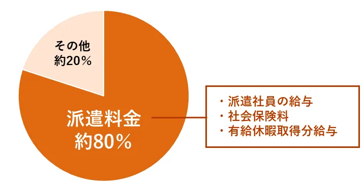 派遣会社によって違いはありますが、派遣料金は派遣社員の給与と社会保険料、有給休暇取得分給与で全体の約80%を占めます。つまり、市況と大きく密接しています。