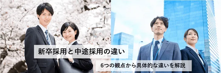 新卒採用・中途採用の違いを、メリット・デメリット、コスト、採用の基準などさまざまな観点で紹介しました。
