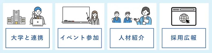 初めてその大学から採用した実績がでれば、キャリアセンターに挨拶に行くなど、タイミングを見ながら大学・研究室との連携の機会を活かすことが大切です。